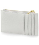 100% leather-look PU. Saffiano fine grain. Soft touch lining. Contemporary slimline design. Zip closure. Holds four credit cards. Can be decorated front and rear. Tear out label.