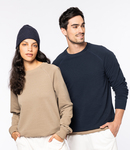 85% organic ringspun combed cotton/15% recycled polyester. Special order items are strictly non-returnable. Lead times vary. French terry. Enzyme washed. 1x1 ribbed collar, cuffs and hem. Herringbone taped neck. Half moon back yoke. Coverseamed around armholes, cuffs and hem. Tag free. Recycled polyester is made from post-consumer waste.